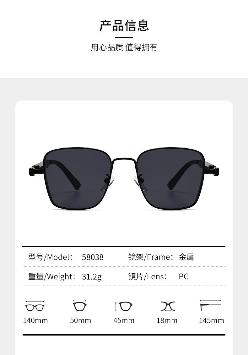 | السيناريوهات القابلة للتطبيق | واقي الشمس، صيد السمك، السفر، الرياضات الخارجية، ركوب الدراجات، تنسيق الأزياء، القيادة، الحفلات | الألوان | إطار ذهبي وعدسة رمادية، إطار فضي وعدسة رمادية، إطار ذهبي وعدسة شاي، إطار أسود وعدسة حمراء، إطار أسود، عدسة رمادية سوداء، إطار فضي وعدسة زرقاء |