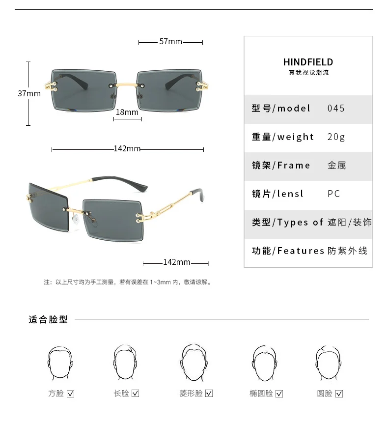 معايير النظارات الشمسية بدون إطار ذات القطع المربع